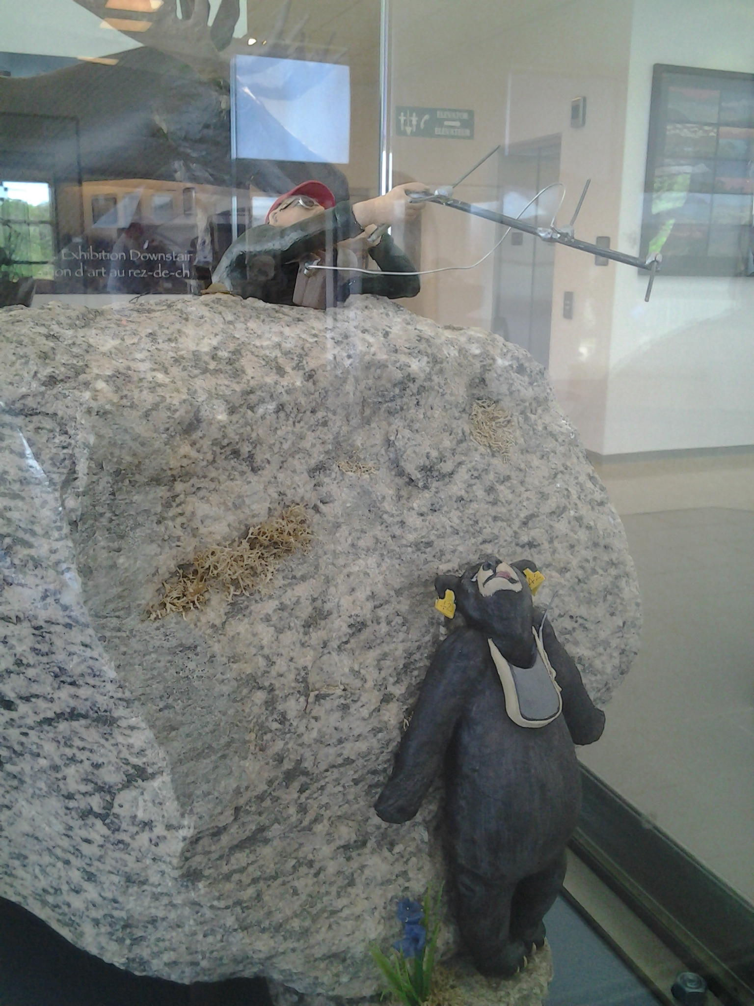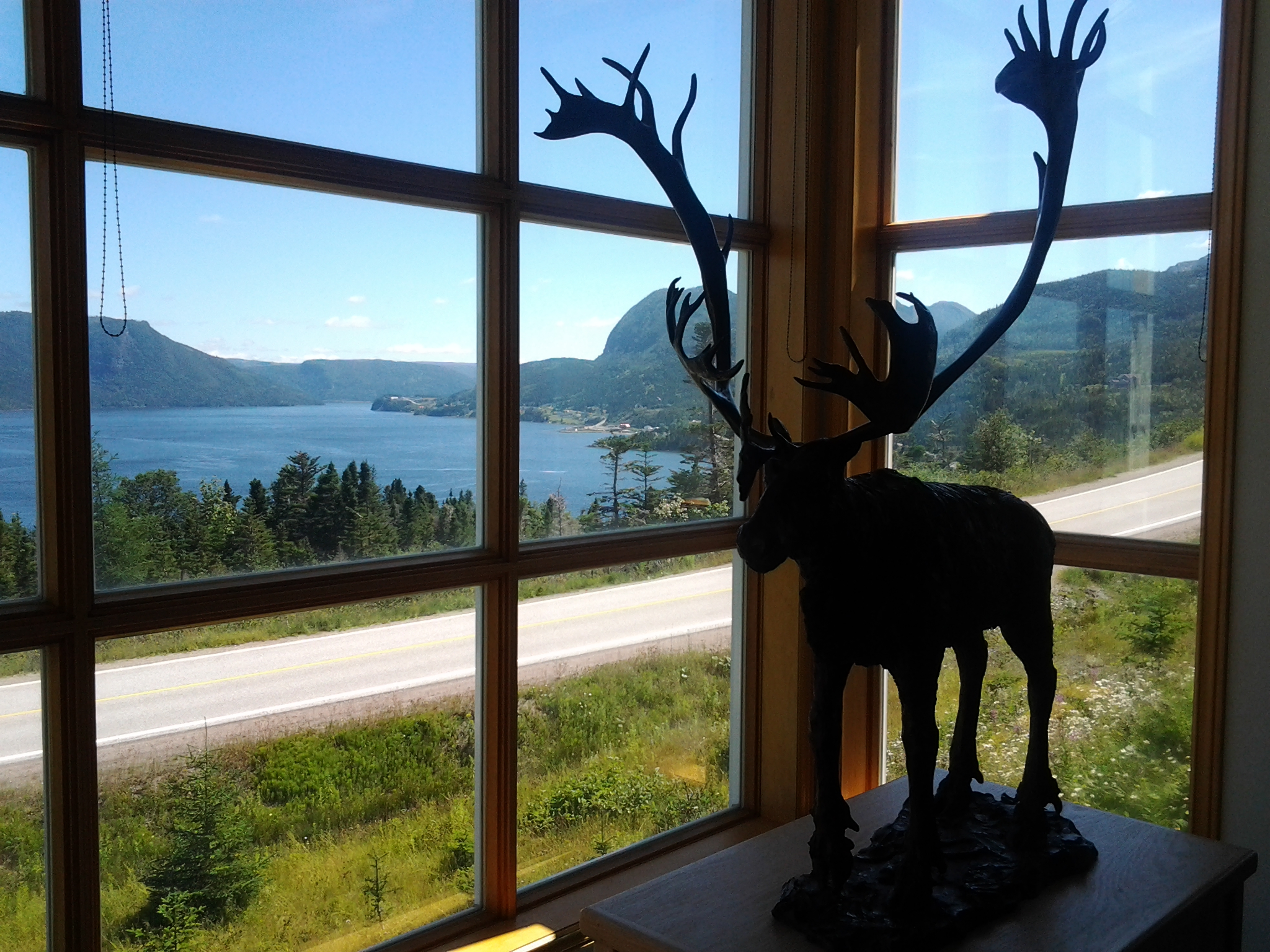 On our way out of Trout River on Route 431 we stopped at the Parks Canada Interpretation Site in Woody Point. An art gallery, park interpretation displays, a film about Gros Morne and a gift shop are spread over 2 floors. The view of Bonne Bay is lovely from the deck of the building perched high on a hill. Some of the interactive displays were not working but the interpretation is very good anyway. I enjoyed a humorous series of sculptures attesting to the difficulties of being researchers in the parks.