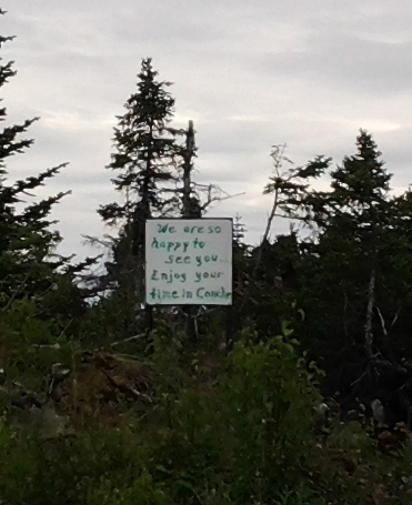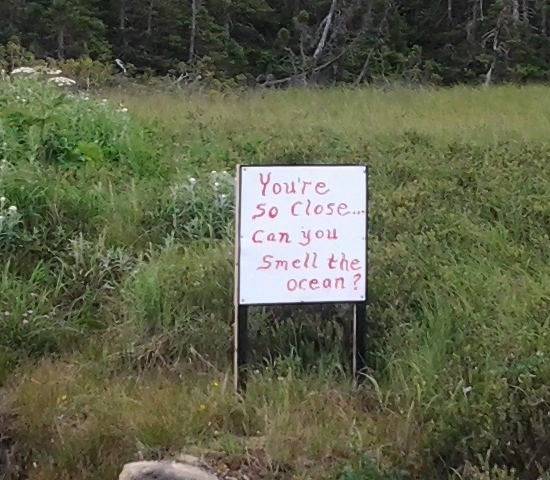With the iceberg itch scratched, we headed to Conche, on the east side of the Peninsula. This community is at the end of one long gravel road. We were lucky enough to go when the grader was refreshing the surface but it’s still a long dusty drive. As we drove, I started to notice some hand painted signs along the way that certainly encouraged us along. What a great idea!