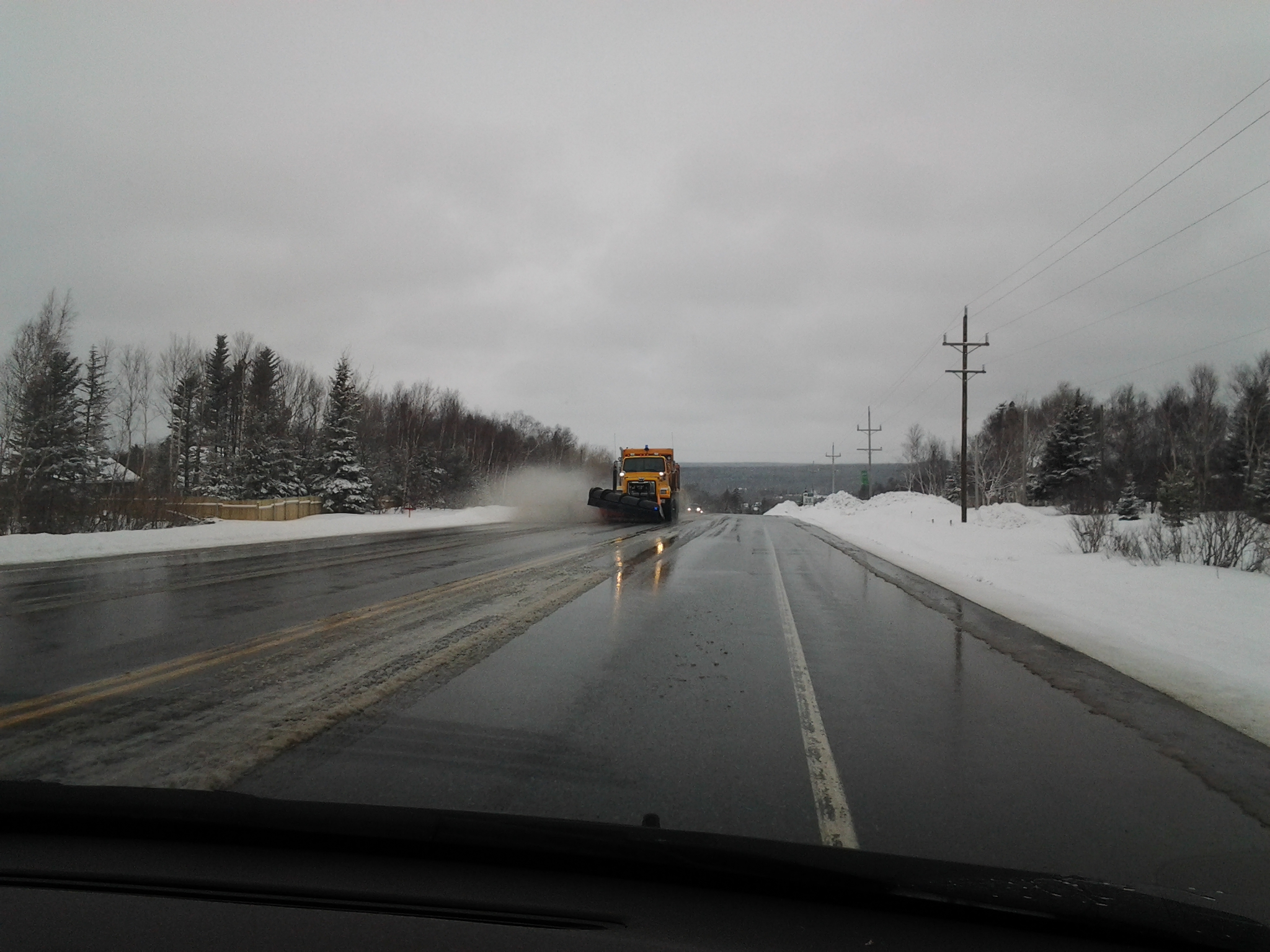 After a night of slop snow (our version of April showers, too) the roads were wet but mostly clear. Snowmobilers were everywhere taking advantage of the fresh base and in some cases getting ready for next year by bringing out firewood.