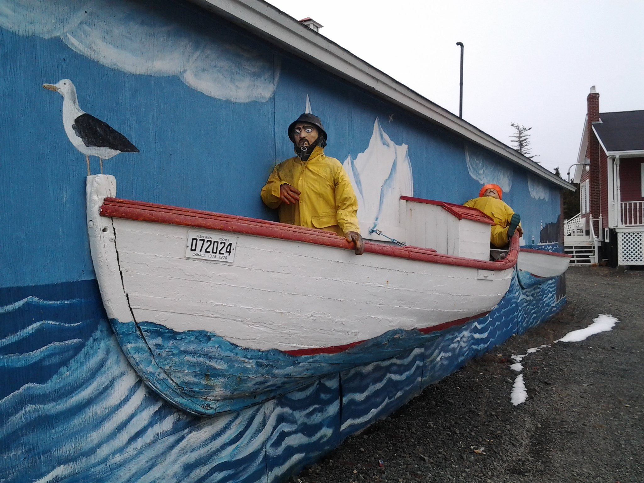 Punt I is mounted on the side of one of the buildings at the Prime Berth Twillingate History and Heritage Center.