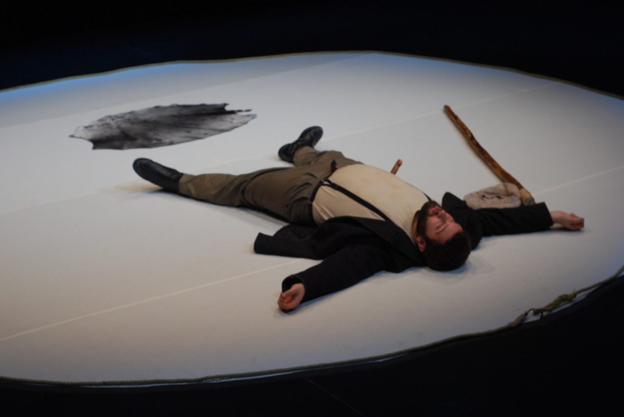 Greg White explaining the necessity of hunting seals in the play Adrift. Photo credit Paddy Barry