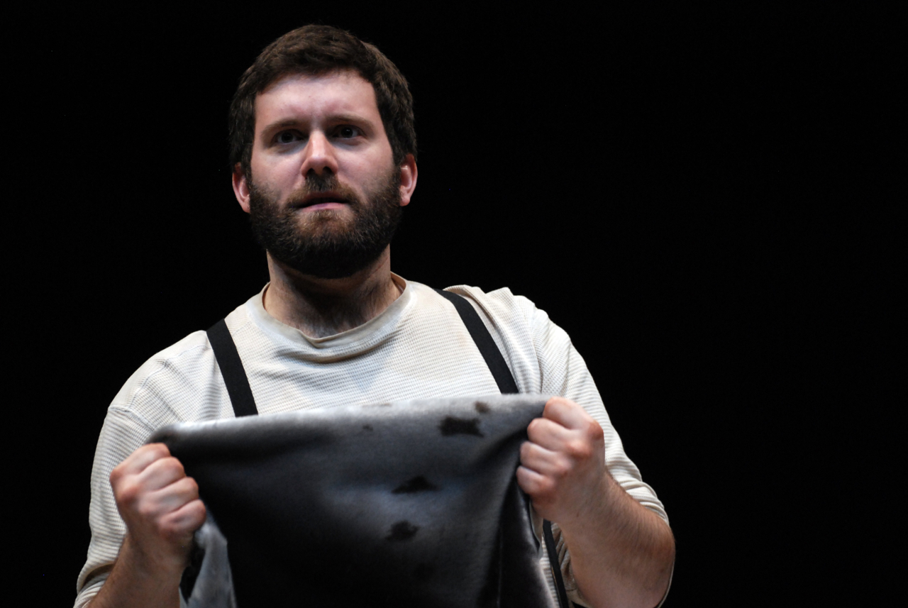 Greg White explaining the necessity of hunting seals to the survival to his family in the play Adrift. Photo credit Paddy Barry