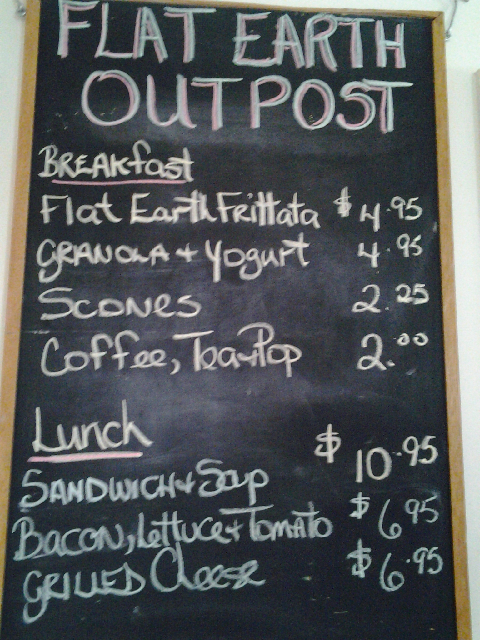 Scones and coffee take away from Flat Earth Outpost would hold us for a while. The smell of freshly grated orange rind for the next batch of scones and the still almost warm pastries were more signs of this being a great adventure in the making.