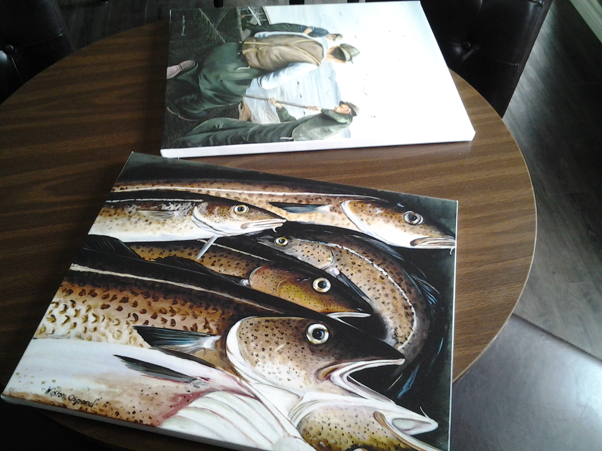 Prints by Adam Young, reading for hanging in the lovely dining room of Mudder’s Place, Fogo, NL