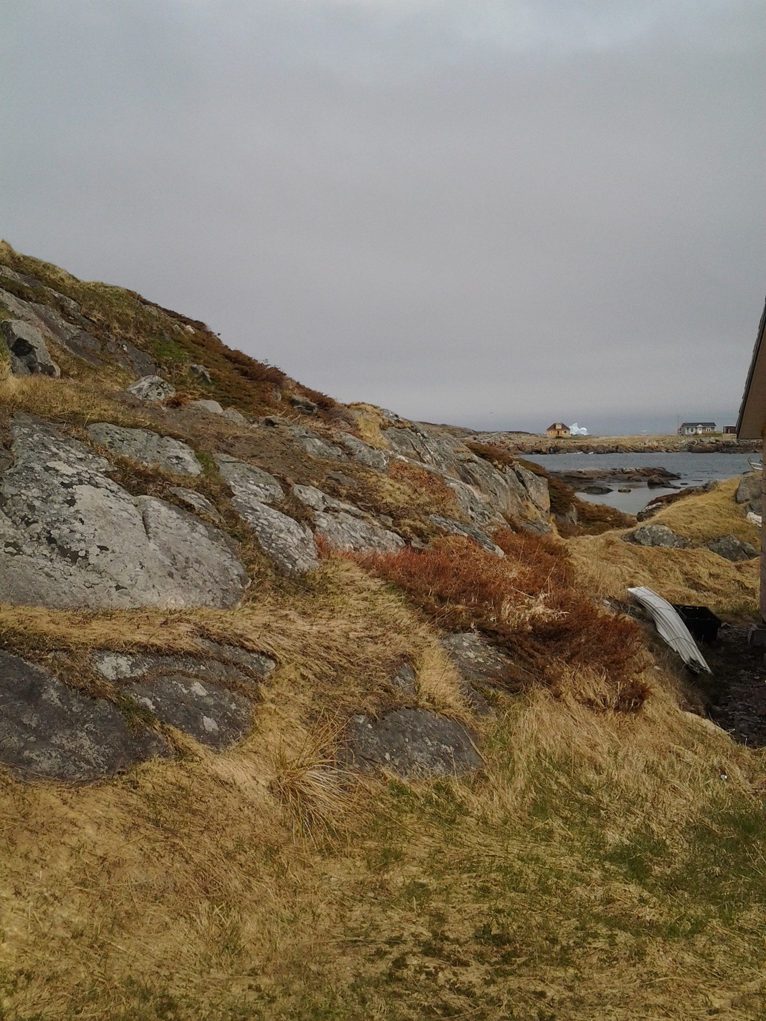 The root cellar and other out buildings were on this part of the property when Leo and Cyril were kids and the hill in the background was barren. Island Harbour, Fogo Island
