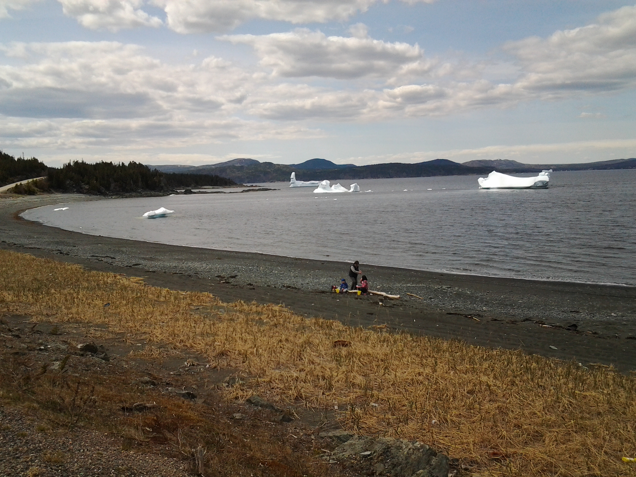 Years ago I saw kids in the water with the icebergs far off shore. It was way too cold for a swim with these around.