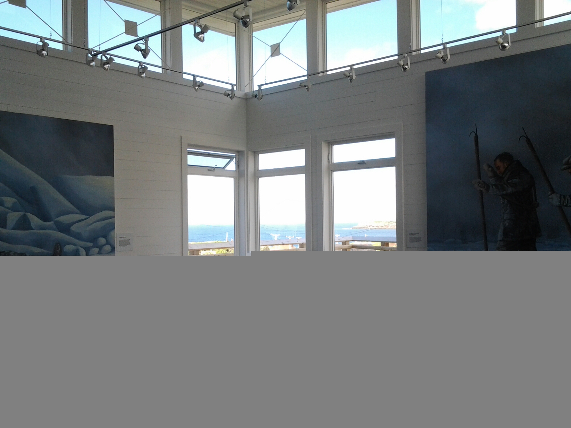 A stunning art gallery faces the ocean on the other end of the Interpretation Centre. Huge paintings by John McDonald portray the sealers lost on the ice. With text from Cassie Brown’s book, one can not help but be flooded with emotion realizing this represents the ordeal that ended with so many deaths. Tissues are provided with reason.
