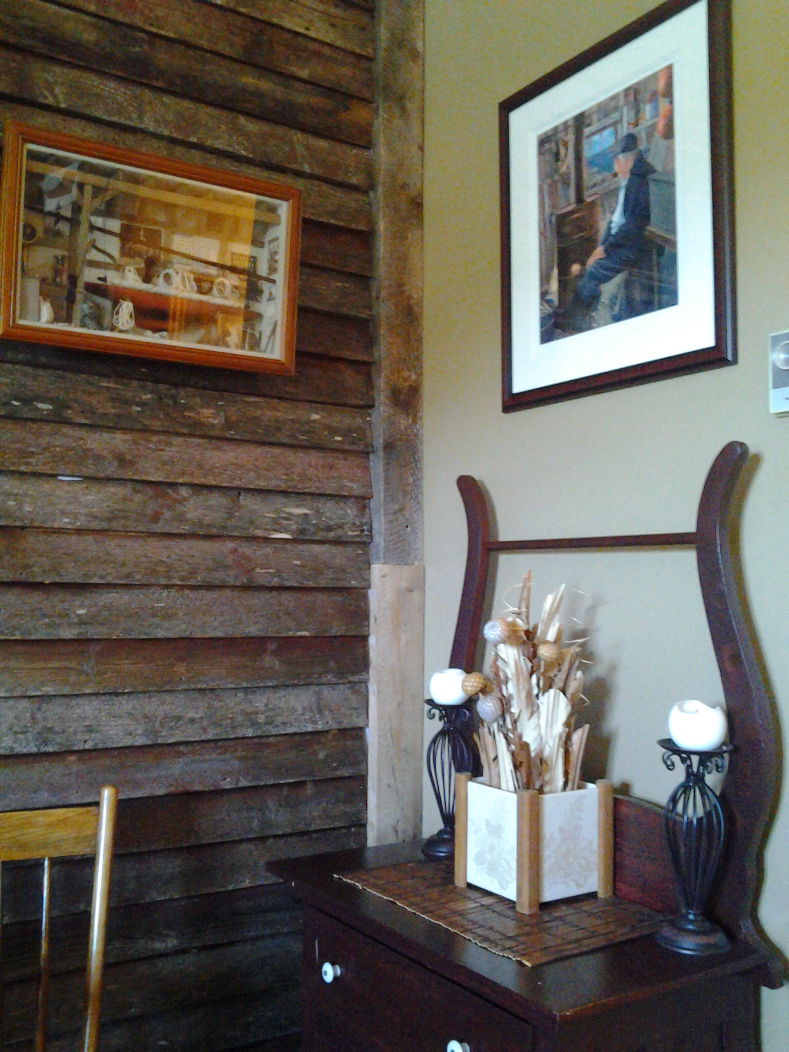 The Inn’s grounds are still a work in progress but the beautiful sign and newly restored building are welcoming as were the number of vehicles there mid-afternoon. Lots of traffic always indicated lots of customers, often regulars who know this is a good spot. I knew from their web page that they had a restaurant so we went in for a late lunch. Although they posted that the dining room closed from 2:30 to 5:00 we were eagerly welcomed at 2:00 and a full menu was presented. We picked hot hamburger sandwiches and had a choice of white or whole wheat homemade bread. While Leo checked out a brew, I left the lovely dining room to explore the art gallery in a room across the hall.