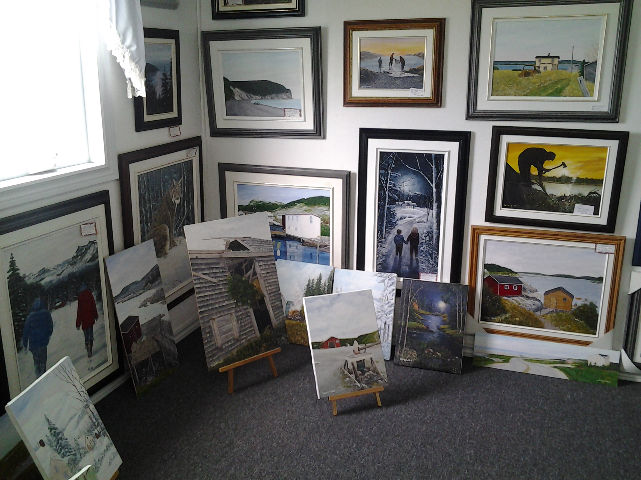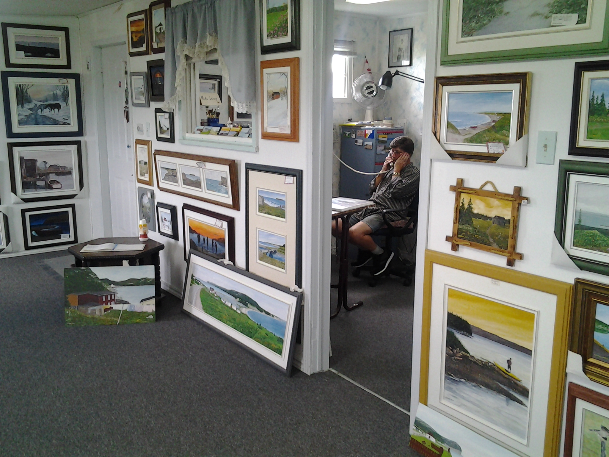 We found a lovely art gallery in Grand`Terre (Mainland). The artist, Mickeal Lainey was working quietly in his office as we browsed his original works ranging from 30 dollars to around three hundred or more. I`m usually the buyer but Leo really liked a picture showing capelin fishing. We ended up with a lovely souvenir of our first visit to Island Studio Art Gallery.