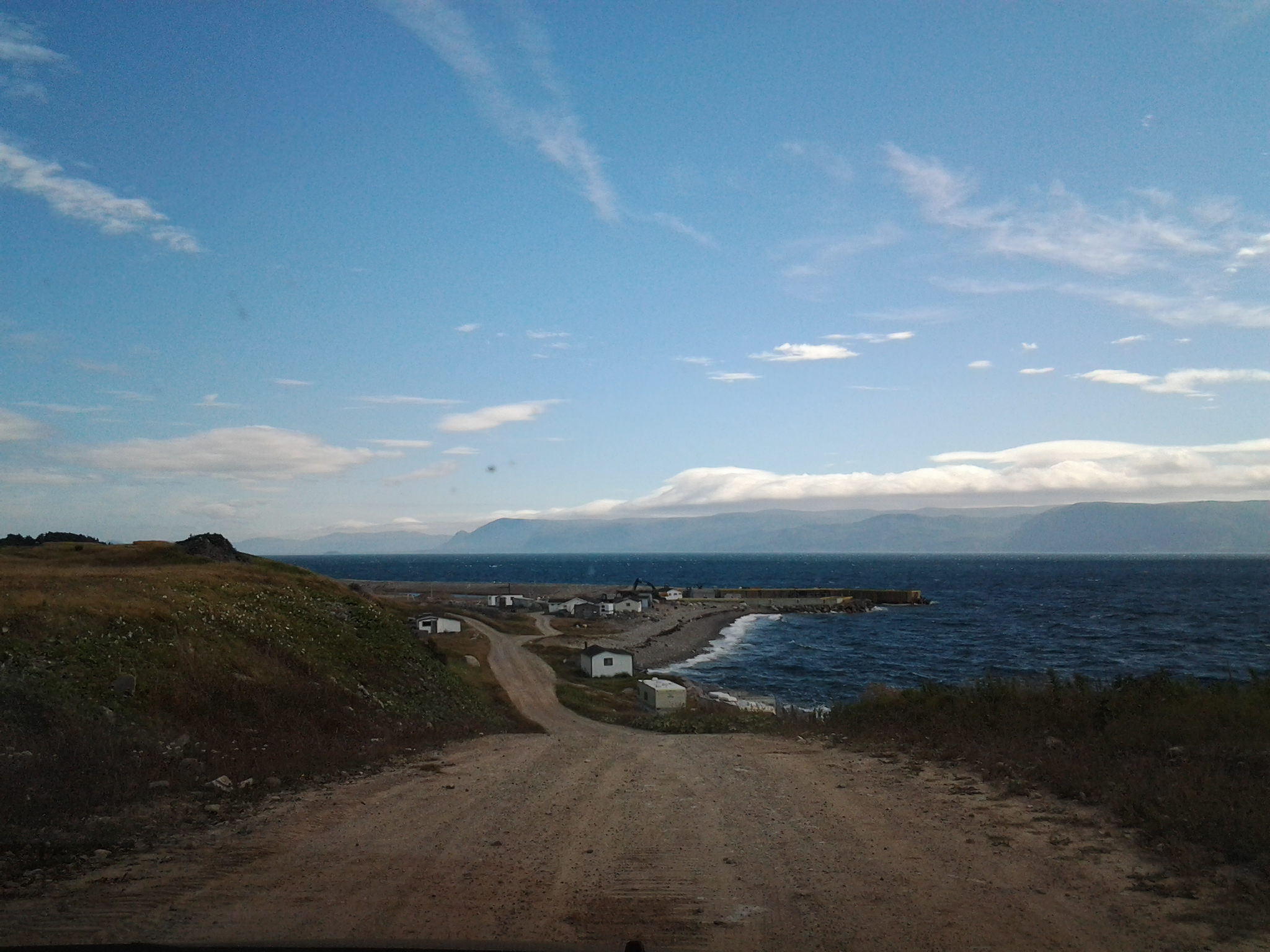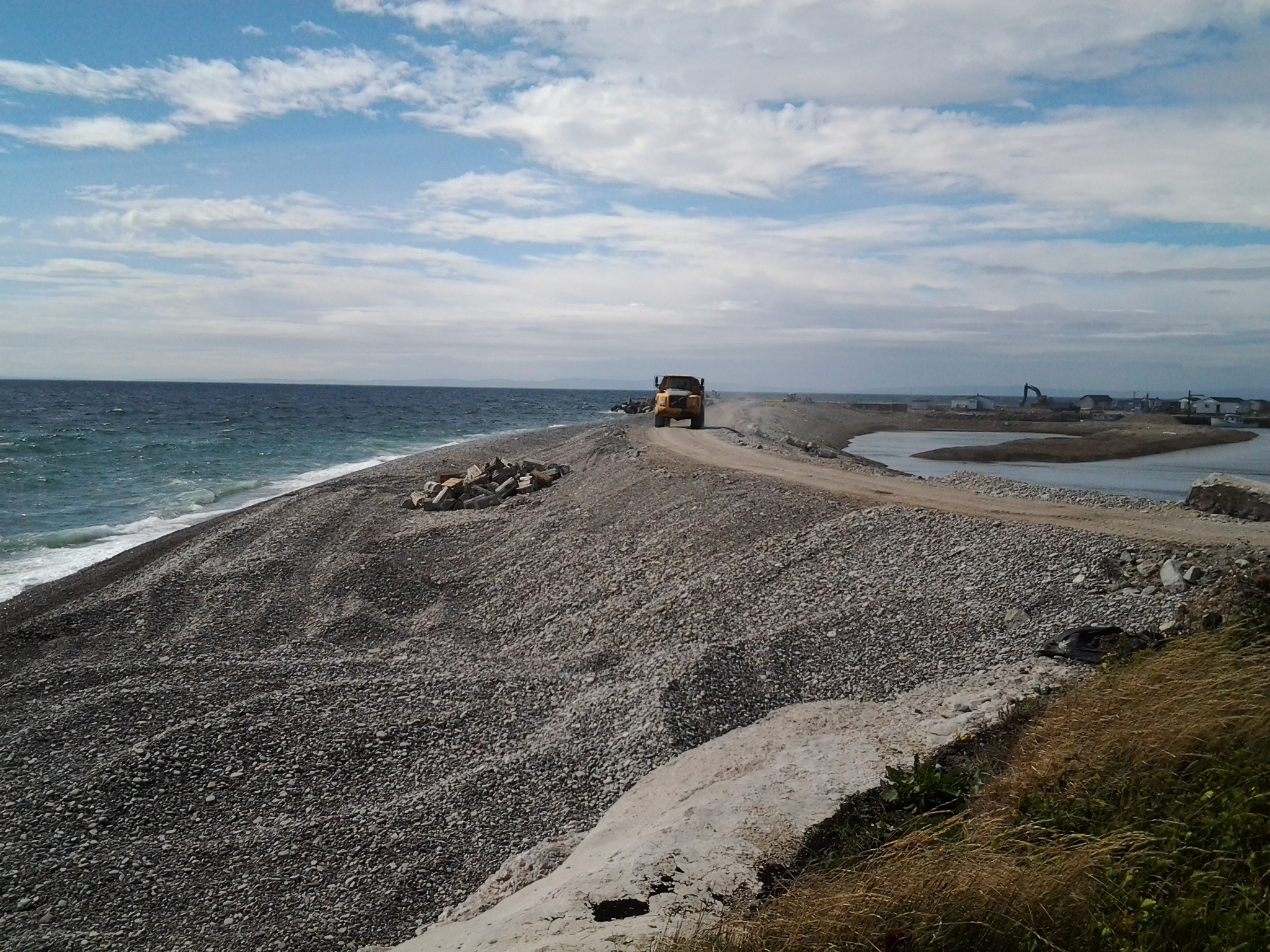 We did take a drive in Black Duck Brook and followed the road out onto Long Point. It was a long drive on a gravel road but the road was well cared for and as the land narrowed, we could see ocean on both sides of the road in some places. We were rewarded by beautiful views and realized the road maintenance was because a large breakwater was under construction at the government wharf at Blue Beach.